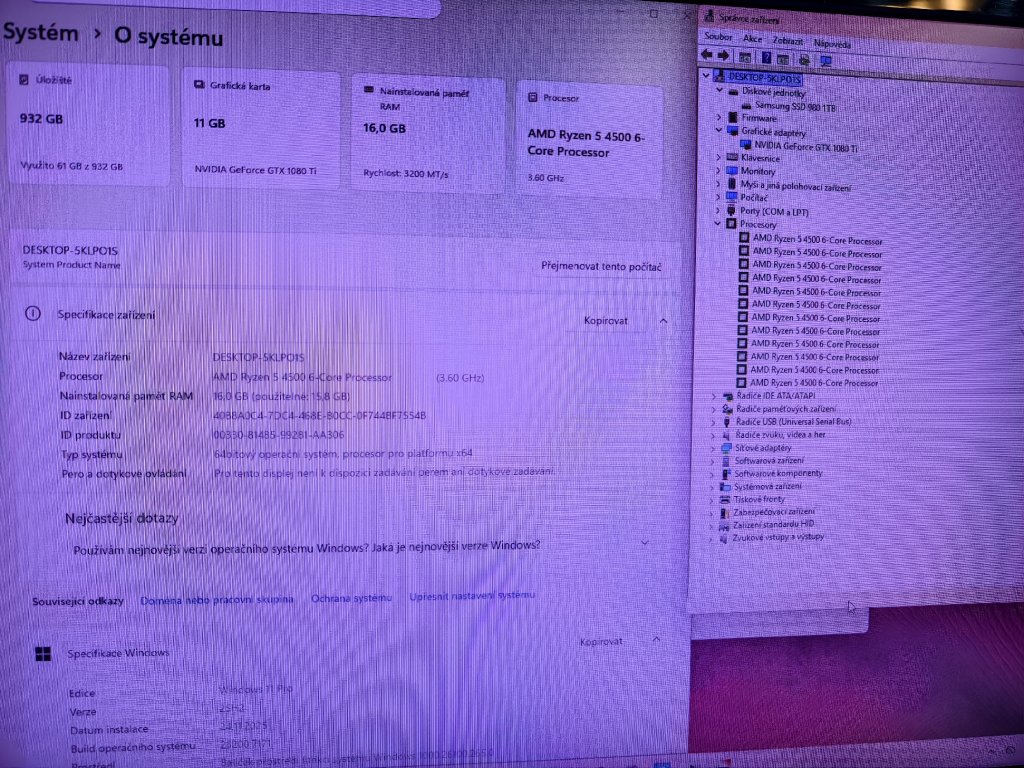 6jádro Ryzen 5 4500, 16GB, GTX1080Ti 11GB, 1TB SSD - záruka