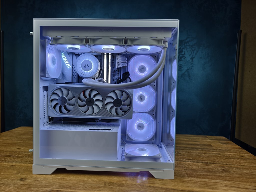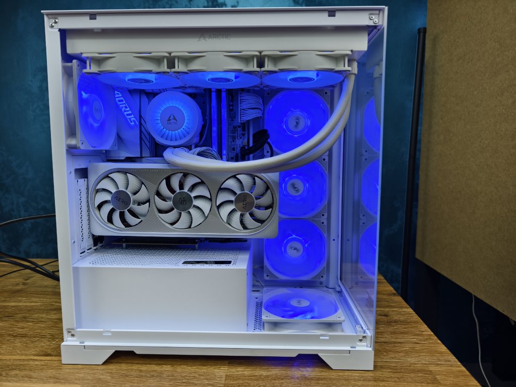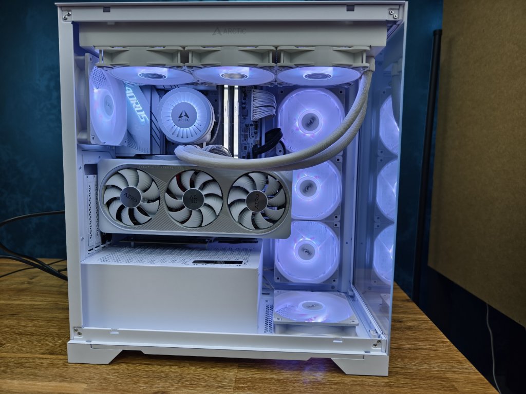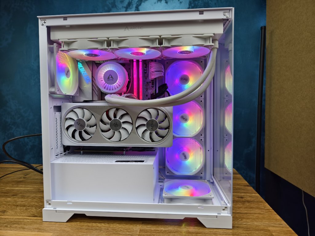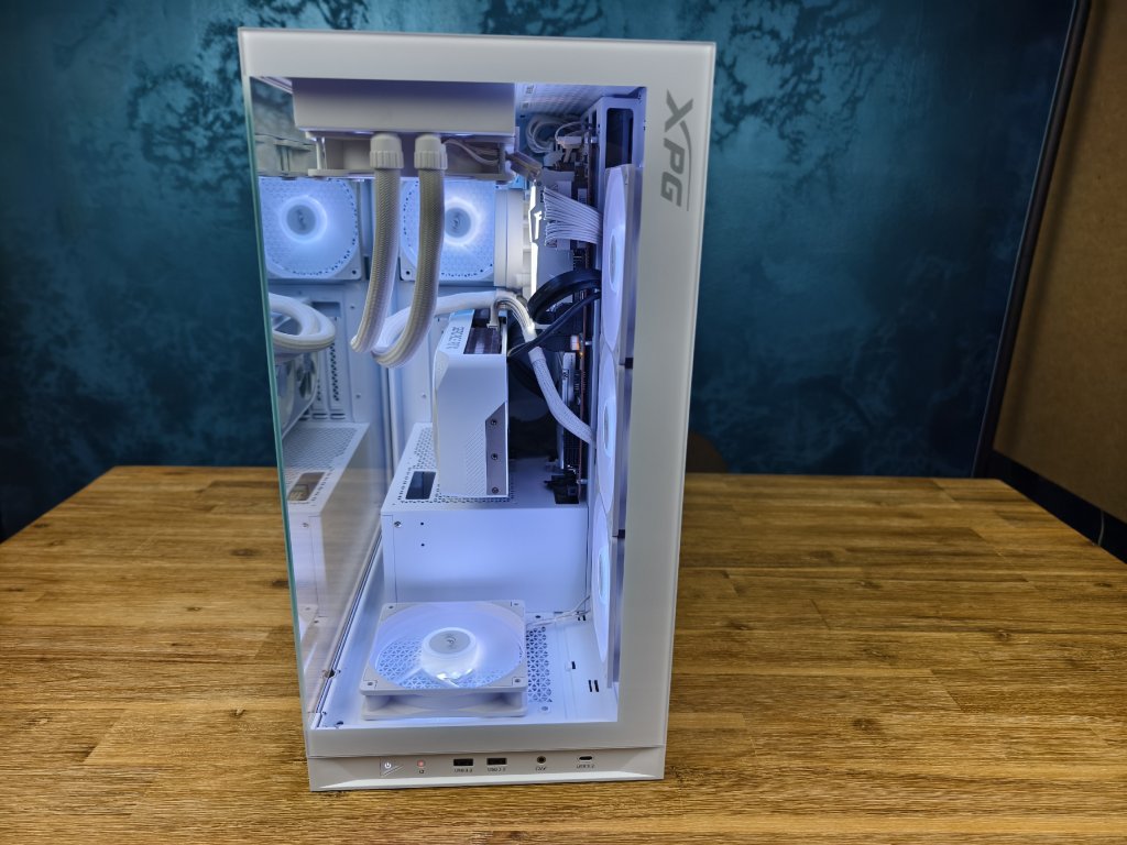 * stylová skříň ADATA XPG Invader X White s 5ti 120mm ARGB ventilátory a PCIe riserem, díky němuž je grafika vertikálně