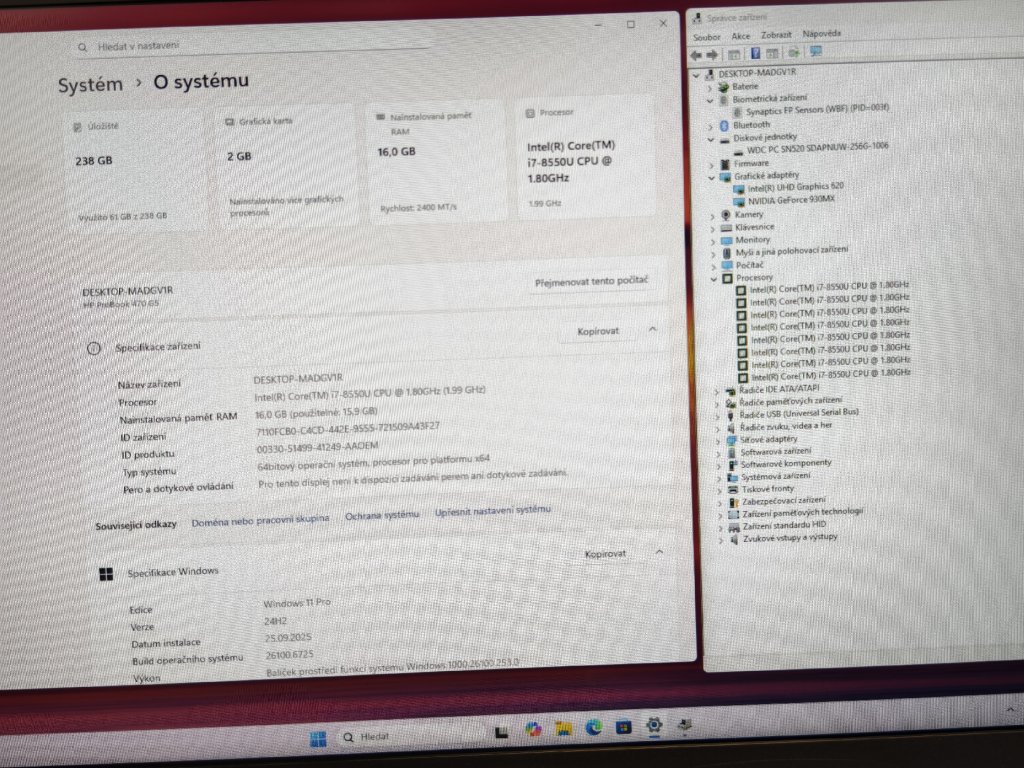 * 4 jádrový 8 vláknový Intel i7-8550U na taktu až 4.0GHz