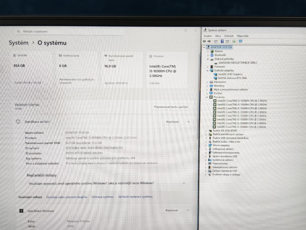 * 4 jádrový Intel i5 10300H na taktu až 4.5GHz